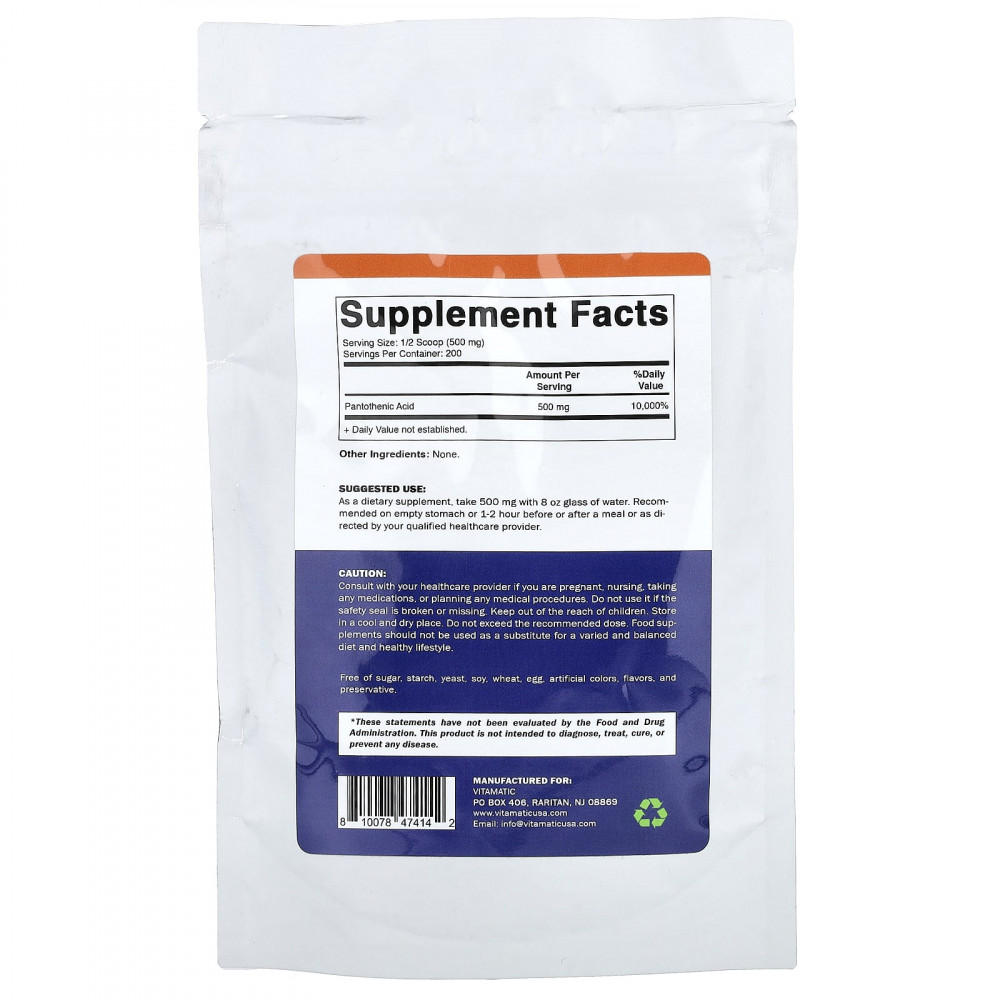 | Пантотеновая кислота | 500 мг | 10 000% |