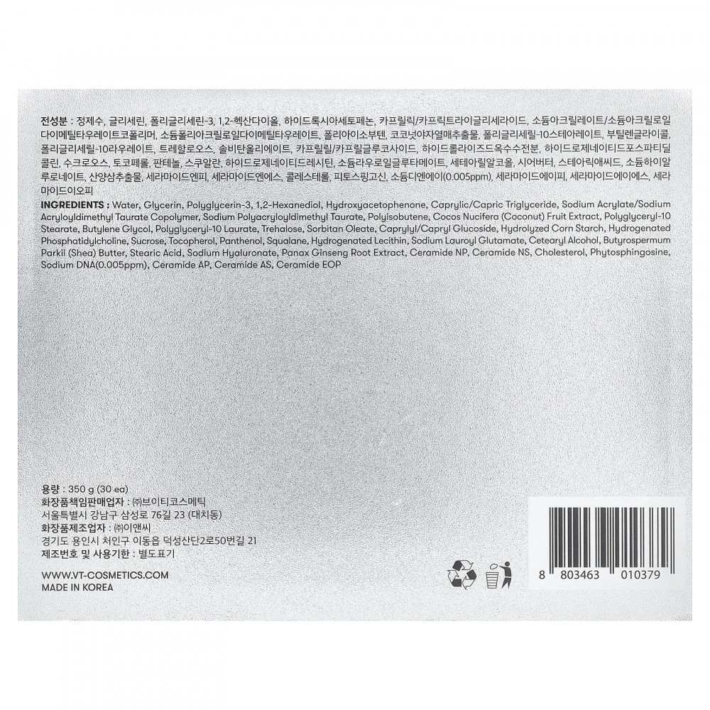 Вода, глицерин, полиглицерин-3,1,2-гександиол, гидроксиацетофенон, каприловый/каприновый триглицерид, натрий акрилат/натрий акрилоилдиметилтаурат сополимер, полиакрилодиметил таурат натрия, полиизобутен, экстракт кокоса (Cocos nucifera), полиглицерил-10 стеарат, бутиленгликоль, полиглицерил-10 лаурат, трегалоза, сорбитанолеат, каприлил/каприл глюкозид, гидролизованный кукурузный крахмал, гидрогенизированный фосфатидилхолин, сахароза, токоферол, пантенол, сквалан, гидрогенизированный лецитин, натрия лауроил глутамат, цетеариловый спирт, масло ши (Butyrospermum parkii), стеариновая кислота, гиалуронат натрия, экстракт корня женьшеня (Panax ginseng), керамид NP, керамид NS, холестерин, фитосфингозин, ДНК натрия (0,005 част./млн), керамид АP, керамид AS, керамид EOP.
