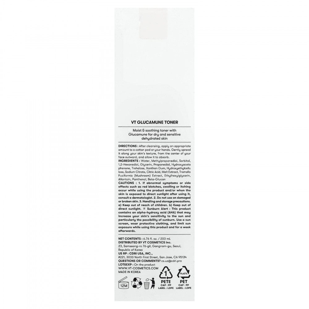 * VT Glucamune: экстракт тремеллы (Tremella fuciformis), бета-глюкан, вода, пропандиол, 1,2-гександиол, этилгексилглицерин.