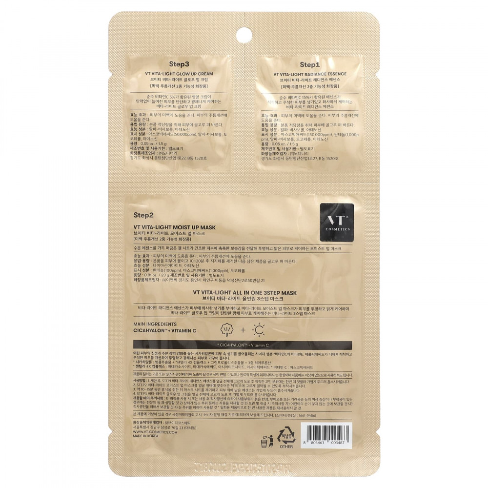 После умывания нанесите необходимое количество эссенции для сияния кожи Vita-Light Radiance Essence, избегая области вокруг глаз и губ. Сосредоточьтесь на тусклой коже, где вы хотите сиять. Возьмите увлажняющую маску Vita-Light Moist Up Mask и нанесите ее на лицо. Через 10–15 минут снимите маску и распределите остатки эссенции похлопывающими движениями, избегая области вокруг глаз и губ. Равномерно нанесите крем для сияния кожи Vita-Light на лицо, избегая области вокруг глаз и губ, и аккуратно похлопайте по лицу.