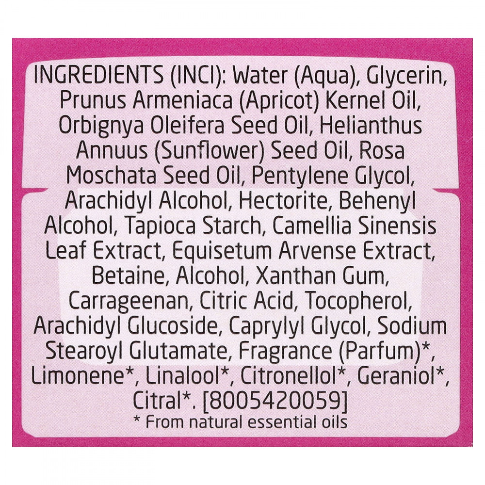 Вода (Aqua), глицерин, масло из косточек абрикоса (Prunus armeniaca), масло из семян бабассу (Orbignya oleifera), подсолнечное масло (Helianthus annuus), масло семян шиповника (Rosa moschata), пентилен гликоль, арахидиловый спирт, гекторит, бегениловый спирт, тапиоковый крахмал, экстракт листьев зелёного чая (Camellia sinensis), экстракт хвоща полевого (Equisetum arvense), бетаин, спирт, ксантановая камедь, каррагинан, лимонная кислота, токоферол, арахидиловый глюкозид, каприлилгликоль, натрия стеароил глутамат, отдушка (парфюмерная композиция)*, лимонен*, линалоол*, цитронеллол*, гераниол*, цитраль*.