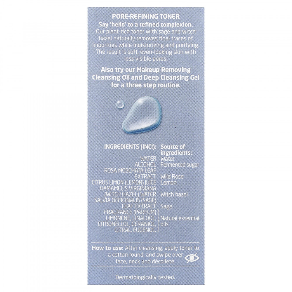 Наш растительный тонер с шалфеем и гамамелисом естественным образом удаляет остатки загрязнений, увлажняя и очищая кожу. В результате кожа становится мягкой, выравнивается и сужает поры.