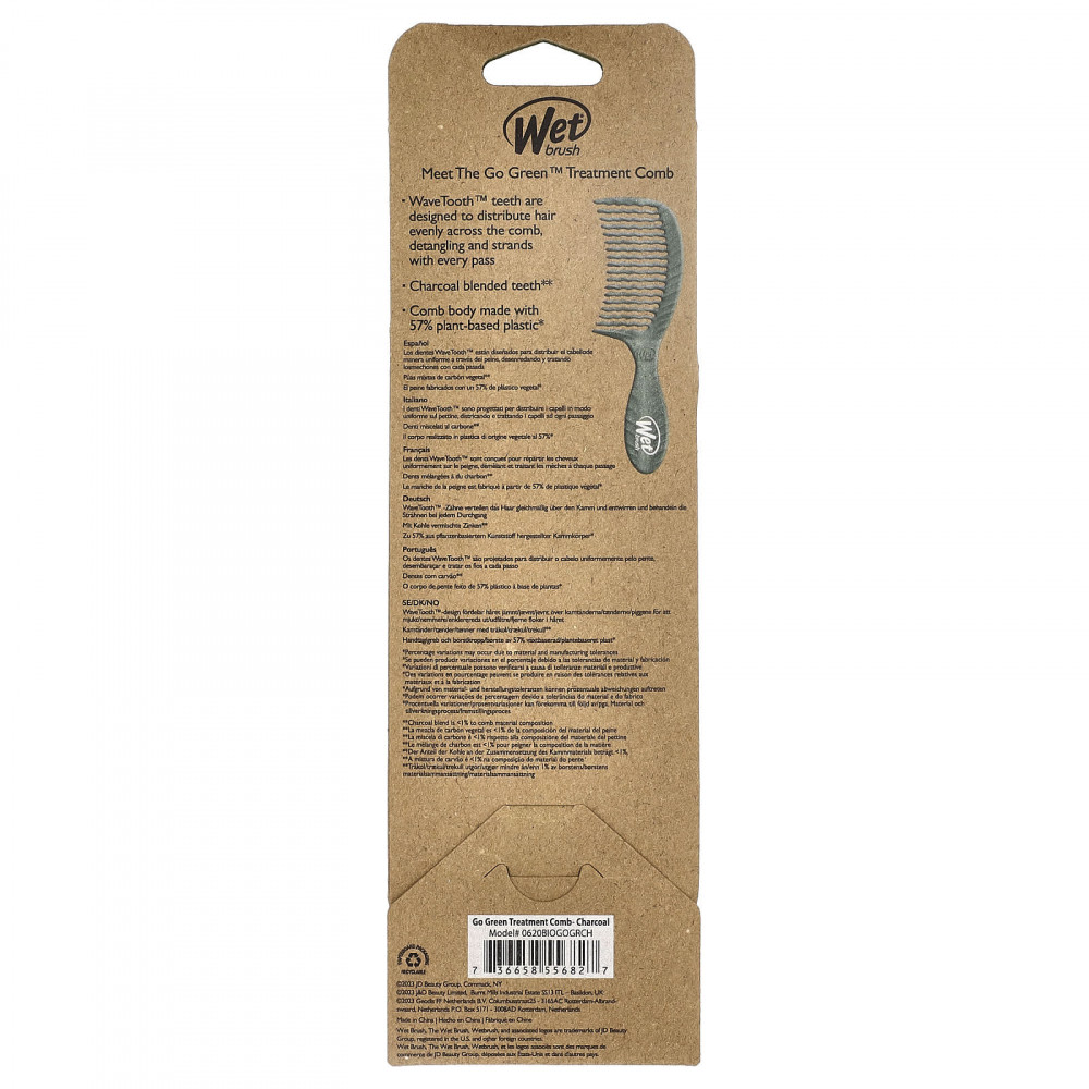 Зубцы Wave Tooth™ предназначены для равномерного распределения волос по гребенке, распутывая пряди при каждом проходе.