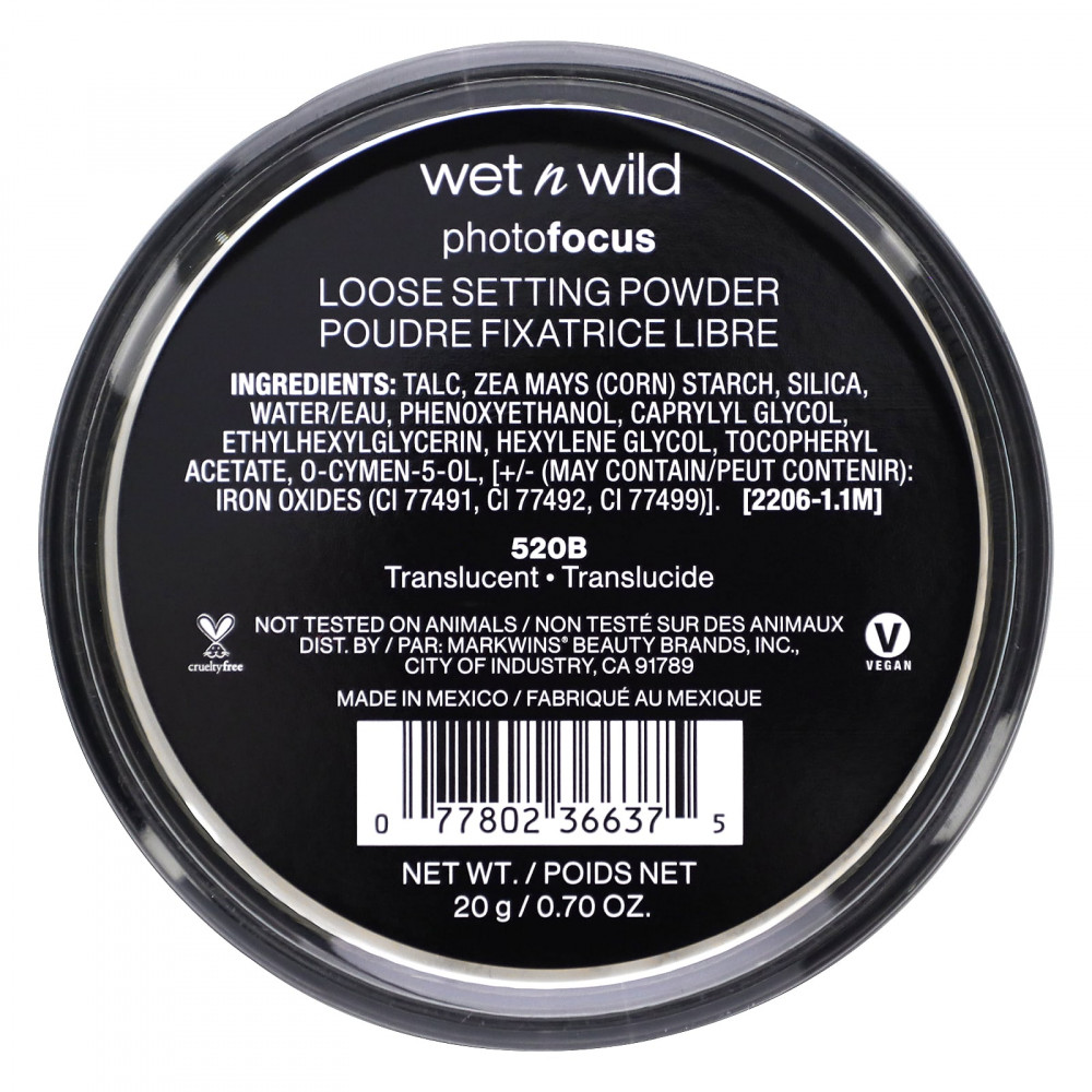 Создавайте безупречные образы с рассыпчатой пудрой для фиксации макияжа Photo Focus от wet n wild. Нежная и невесомая, эта универсальная пудра идеально подходит для закрепления макияжа, матирования, поглощения излишков жира или техники бэйкинга. Завершите свой макияж этой пудрой, чтобы придать коже эффект мягкого фокуса и визуально сгладить тонкие линии и несовершенства. Независимо от выбранного стиля, ни один образ не будет полным без этой лёгкой и удобной для нанесения пудры.