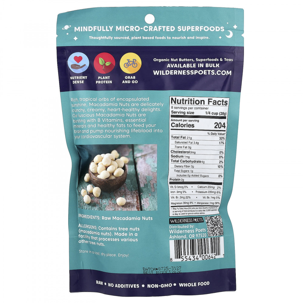 Орехи макадамия, насыщенные тропическим солнечным светом, - это деликатно хрустящее, сливочное наслаждение для здоровья сердца. Наши сочные орехи макадамия содержат витамины группы В, незаменимые минералы и полезные жиры, которые питают мозг и насыщают сердечно-сосудистую систему питательными веществами.