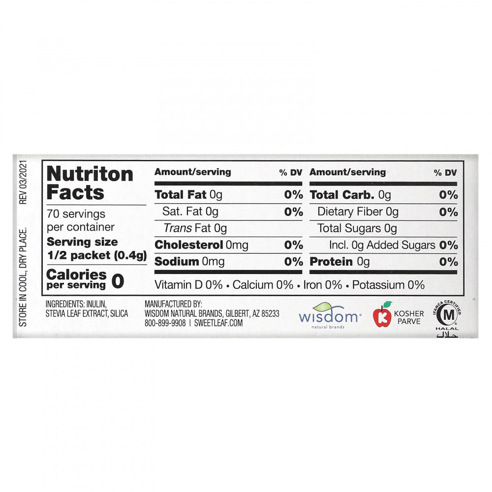 Подсластитель из стевии SweetLeaf® — оригинальный подсластитель на основе стевии, который произвел фурор в этой отрасли. Подсластитель на основе стевии SweetLeaf, объединяющий преимущества природы и науки, не имеет горького послевкусия и содержит полезный пребиотик — инулин.