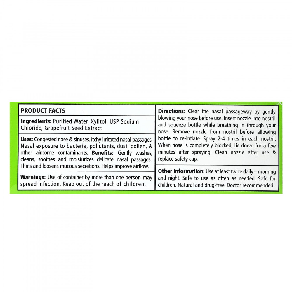 Перед использованием очищайте носовые проходы, осторожно высморкаясь. Вставьте насадку в ноздрю и сожмите флакон, одновременно вдохнув через нос. Выньте насадку из ноздри, а затем разожмите флакон. Распылите 2–4 раза в каждую ноздрю. Если нос полностью заложен, прилягте на несколько минут после распыления. Очистите насадку после использования и наденьте защитный колпачок.