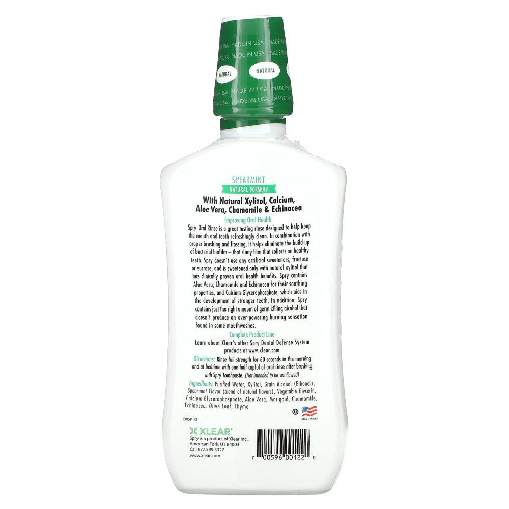 Ополаскиватель для рта Spry — это ополаскиватель для рта с отличным вкусом, который поддерживает чистоту полости рта и зубов. В сочетании с правильной чисткой зубов щеткой и зубной нитью это помогает устранить скопление бактериальной биопленки — слизистой пленки, которая скапливается на здоровых зубах. Spry не содержит искусственных подсластителей, фруктозы или сахарозы, а также подсластитель только натуральным ксилитолом, польза которого для здоровья полости рта подтверждена клинически. Spry содержит алоэ вера, ромашку и эхинацею, обладающие успокаивающими свойствами, а также глицерофосфат кальция, который способствует укреплению зубов. Кроме того, Spry содержит нужное количество спирта, для уничтожения микробов, который не вызывает сильного жжения, присущего некоторым ополаскивателям для рта.