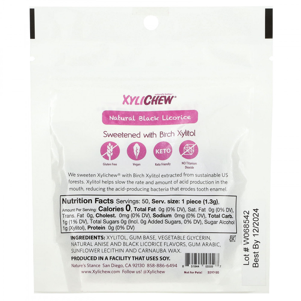 Ксилитол, жевательная основа, растительный глицерин, натуральные ароматизаторы «Анис» и «черная солодка», аравийская камедь, подсолнечный лецитин и карнаубский воск.