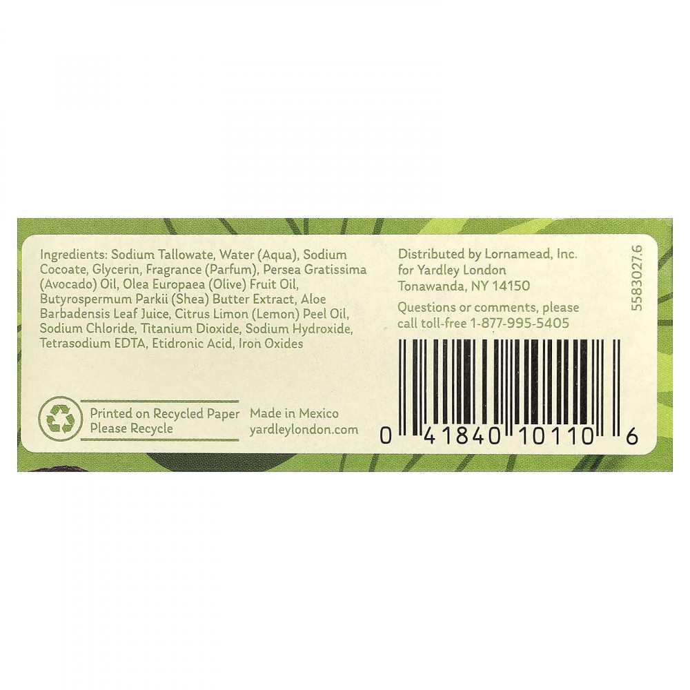 Мыло для ванны с алоэ и авокадо от Yardley содержит кремообразные экстракты авокадо и натуральные экстракты оливы, которые мягко очищают и кондиционируют кожу. С ароматом зелени, трав и цитрусов