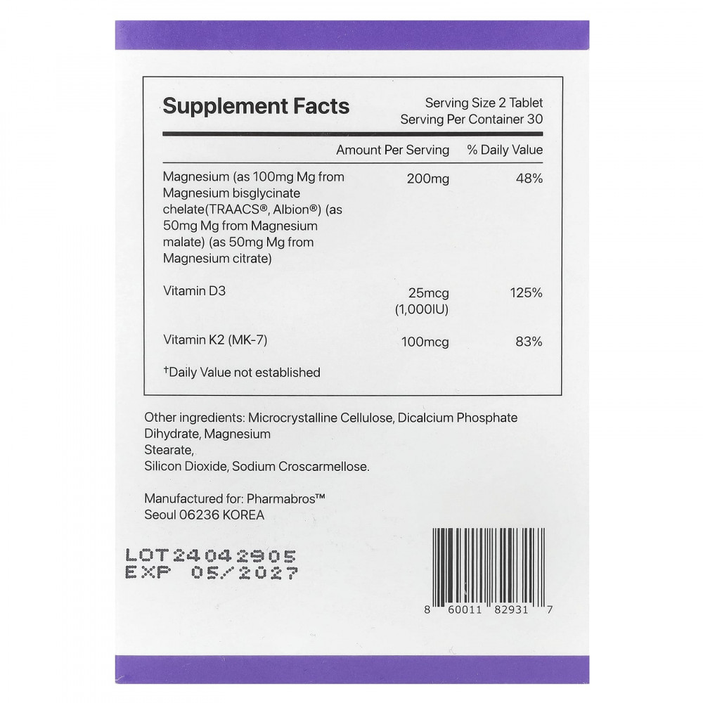 | Магний (в виде 100 мг мг из хелата бисглицината магния (TRAACS® Albion®) (в виде 50 мг мг из малата магния) (в виде 50 мг мг из цитрата магния) | 200 мг | 48% |