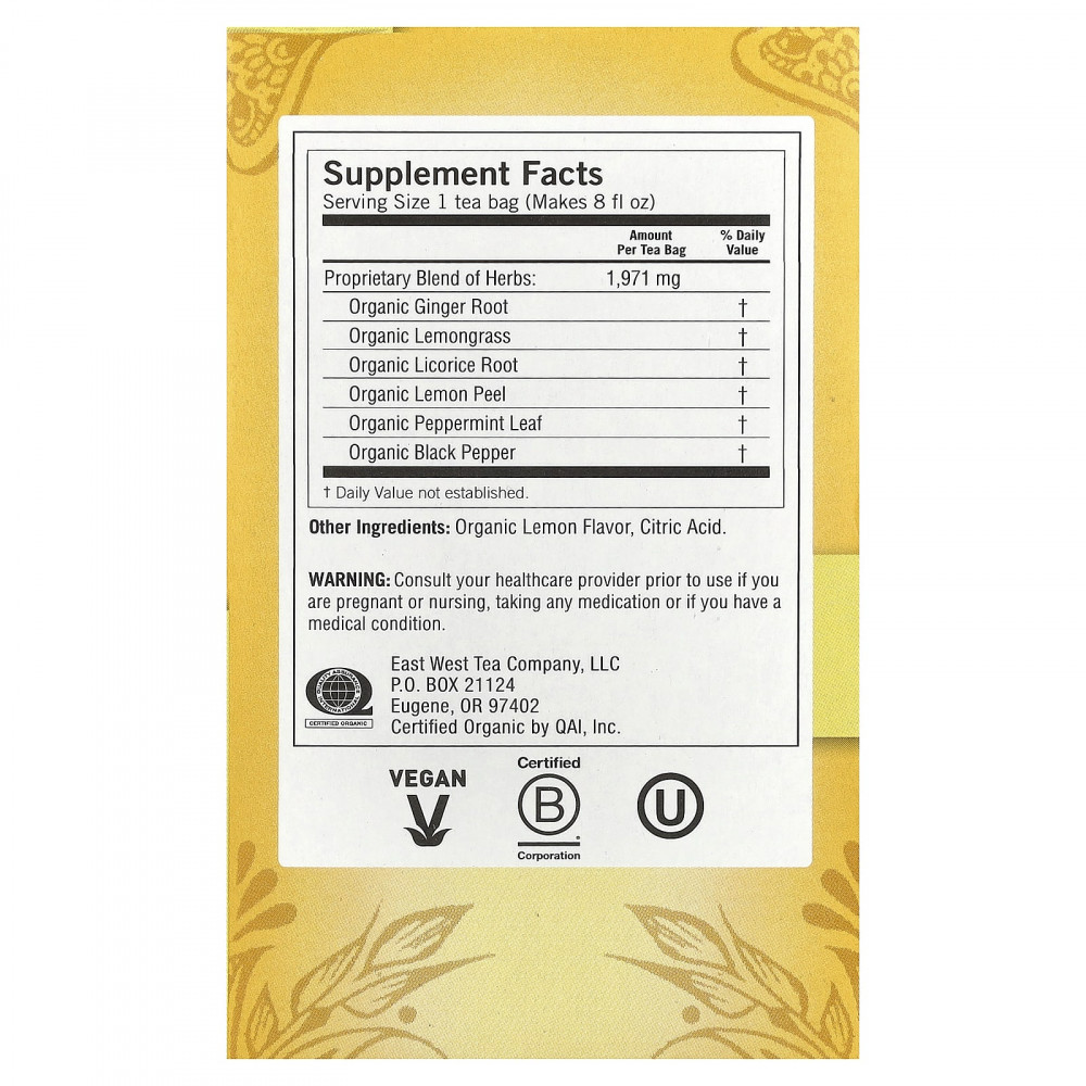 Чай с лимоном и имбирем представляет собой пикантную смесь, в состав которой входит имбирь, столетиями используемый в аюрведической медицине в качестве согревающего и улучшающего пищеварение средства, придающий кислинку лимон и освежающая мята. Выпейте чашку нашего прекрасного травяного чая. Он подарит вам незабываемый вкус и поможет избавиться от легкого дискомфорта в животе.