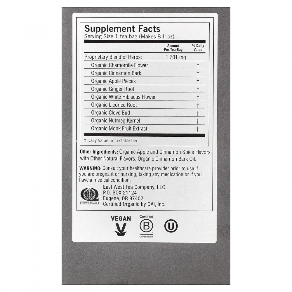 Сочное яблоко в сочетании с согревающими корицей, гвоздикой, имбирем и успокаивающей ромашкой - это идеальный согревающий напиток. Хватайте мягкое овес и наслаждайтесь этой успокаивающей смесью, которая подарит вам ощущение безмятежности и спокойствия при смене сезонов.
