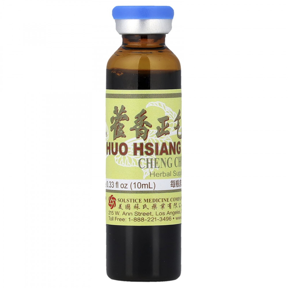 Huo Hsiang Cheng Chi Shuei способствует здоровым функциям организма и поддерживает здоровье и регуляцию работы иммунной, дыхательной и желудочно-кишечной систем.