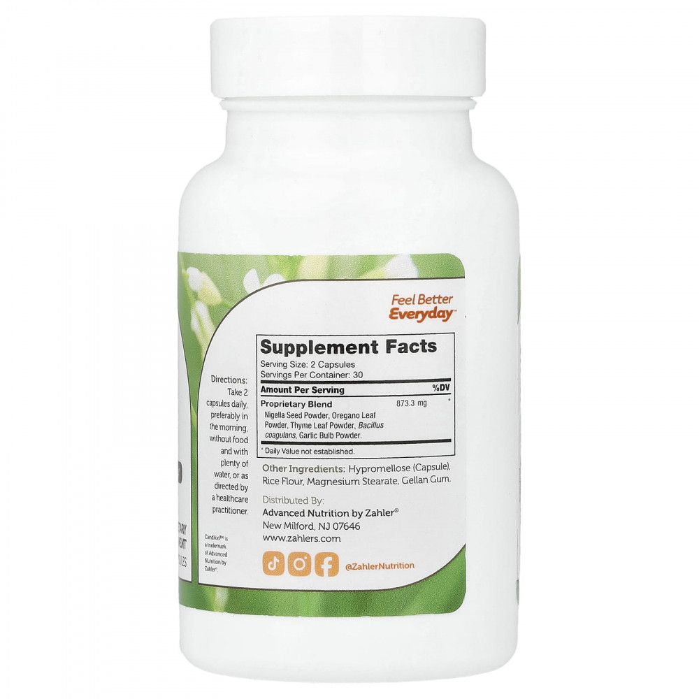 CandAid от Zahler содержит усовершенствованную запатентованную смесь известных растительных компонентов, включая листья орегано, головки чеснока и другие, и разработан для поддержания здоровья кишечника и баланса дрожжей.