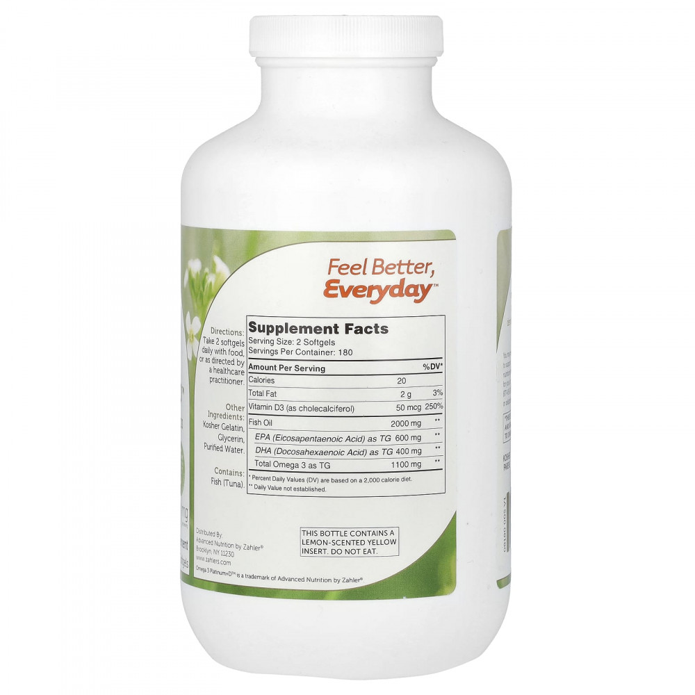 Омега-3 — незаменимые жирные кислоты, которые необходимы нашему организму, но при этом не могут быть синтезированы им самостоятельно. Добавка Omega 3 Platinum+D ™ от Zahler содержит значительную дозу витамина D3 и жирные кислоты омега-3, полученные из тунца, для поддержания здоровья мозга и сердца, а также общего здоровья и хорошего самочувствия.