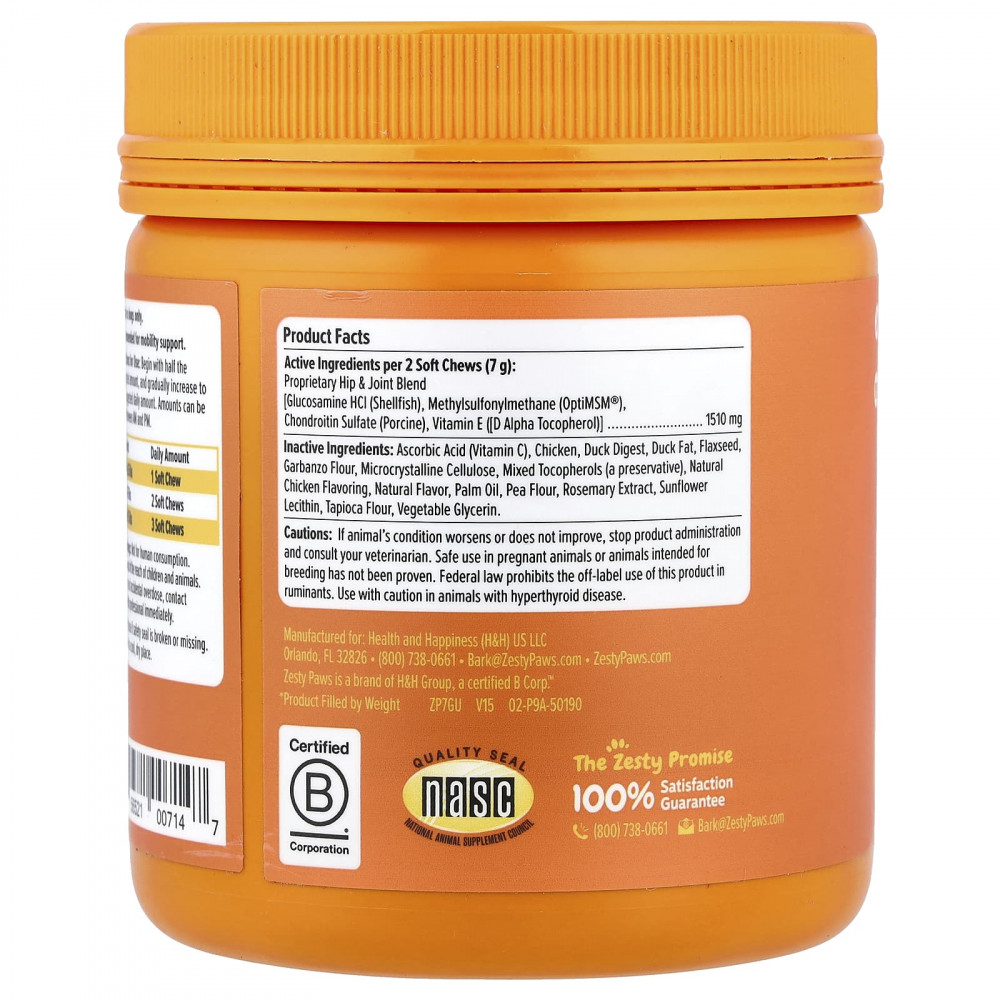 | Запатентованная смесь для бедер и суставов [глюкозамина гидрохлорид (из моллюсков), метилсульфонилметан (OptiMSM®), хондроитинсульфат (свиной), витамин E ([D-альфа-токоферол]) | 1510 мг |