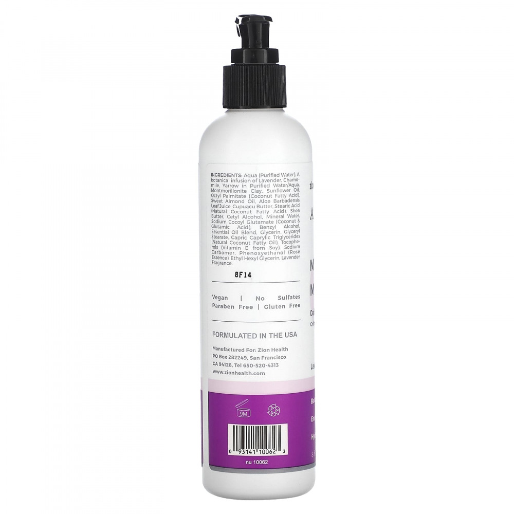 Очищенная вода, растительный настой лаванды, ромашкой, тысячелистник в очищенной воде / вода, монтмориллонитовая глина, подсолнечное масло, октилпальмитат (кокосовая жирная кислота), масло сладкого миндаля, сок из листьев алоэ вера (Aloe barbadensis), масло купуасу, стеариновая кислота (натуральная кокосовая жирная кислота), масло ши, цетиловый спирт, минеральная вода, кокоил глутамат натрия (смесь эфирных масел кокоса и глутаминовой кислоты)., глицерин, глицериловая кислота), бензиловый спирт, стеарат, каприновые каприловые триглицериды (натуральное кокосовое жирное масло), токоферолы (витамин Е из сои), карбомер натрия, феноксиэтанол (розовая эссенция), этилгексилглицерин, лавандовый аромат.
