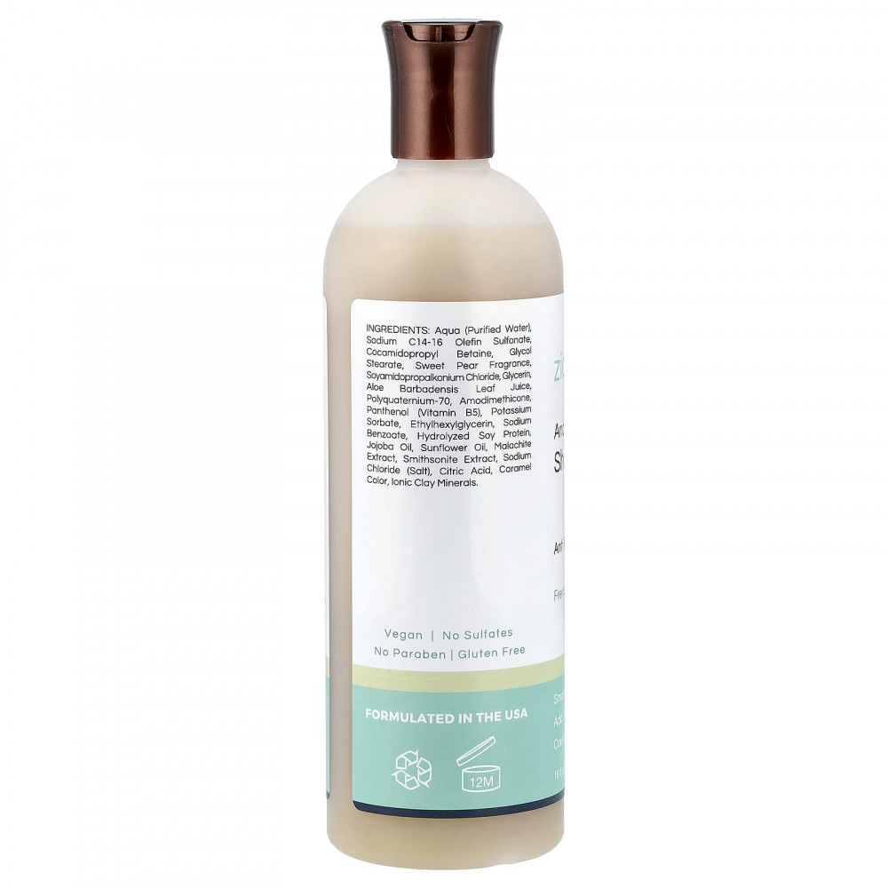 Вода (очищенная), натрия С14-16 олефин сульфонат, кокамидопропилбетаин, гликоль стеарат, аромат сладкой груши, соямидопропалкониум хлорид, глицерин, сок из листьев алоэ вера (Aloe barbadensis), поликватерниум-70, амодиметикон, пантенол (витамин B5), сорбат калия, этилгексилглицерин, бензоат натрия, гидролизованный белок из сои, масло жожоба, масло подсолнечника, экстракт малахита, экстракт смитсонита, хлорид натрия (соль), лимонная кислота, карамель (краситель), ионные глинистые микроэлементы.