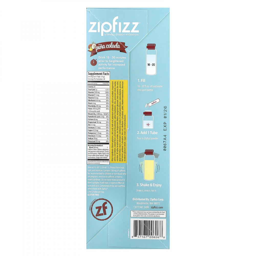 Хранить при температуре 15‒30 °C (59‒86 °F). Беречь от воздействия тепла, света и влаги. Каждая порция содержит 100 мг кофеина. Не рекомендуется детям, беременным, людям с чувствительностью к кофеину и людям с заболеваниями. Не оставляйте смешанный продукт под прямыми солнечными лучами, это отрицательно скажется на его вкусе и цвете. При смешивании с Zipfizz® газированные напитки могут вылезти через край.